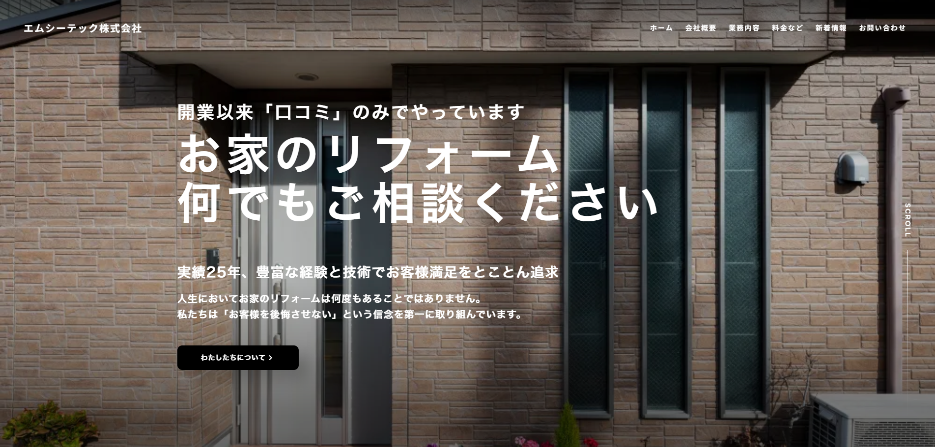 リフォーム業・光触媒コーティングなどをエムシーテック株式会社。企業の実績や技術力を分かりやすく伝えるため、情報構成を整理しホームページを制作しました。信頼性を重視した企業サイトとして、取引先への情報発信を行っています。